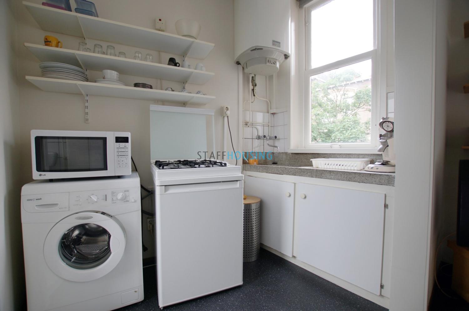De studio wordt volledig gemeubileerd opgeleverd en is voorzien van alle gemakken. De huurprijs is inclusief gas, water en elektriciteit. Daarnaast beschikt de woning over diverse keuken- en huishoudelijke apparatuur, waaronder een kooktoestel, koelkast met vriesvak, magnetron, wasmachine en stofzuiger.